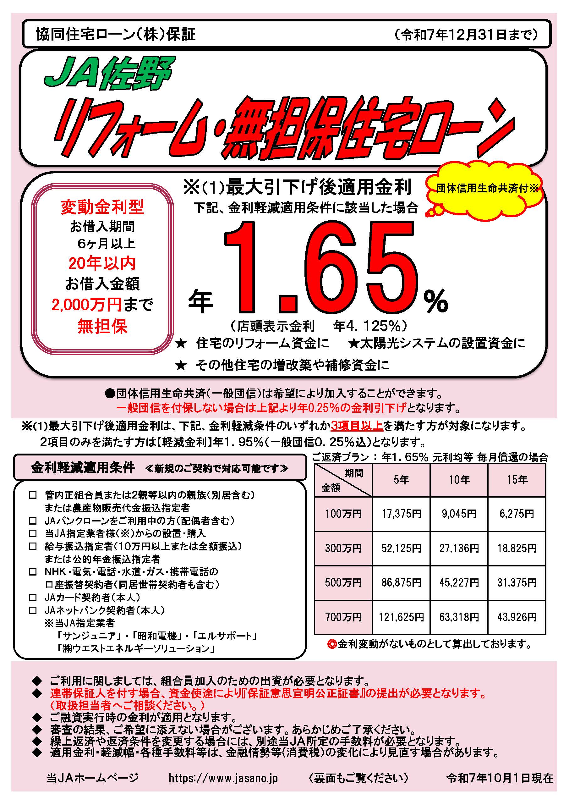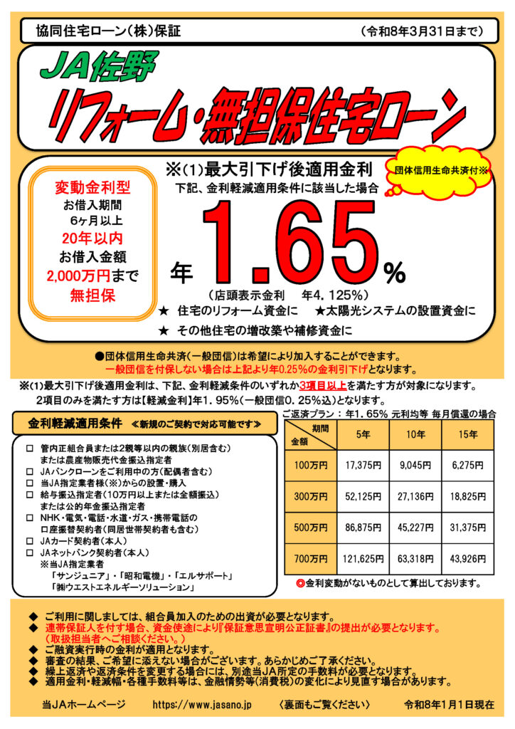 栃木県農業信用基金協会保証 リフォームローンキャンペーン