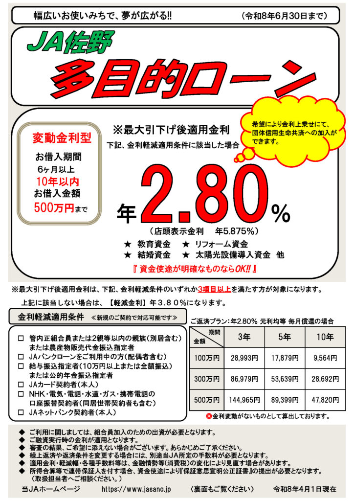 栃木県農業信用基金協会保証 リフォームローンキャンペーン