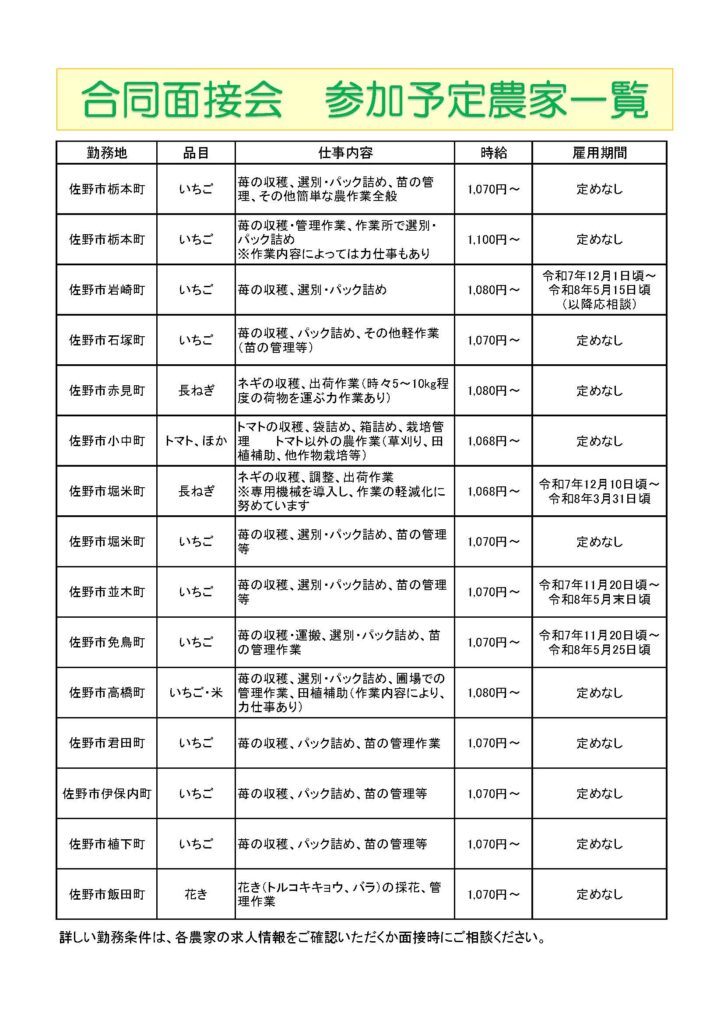 パートを募集する農家が一堂に集まり、下記の日程で合同面接会を開催します。